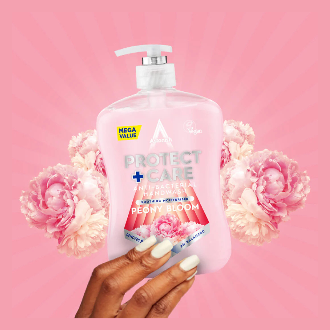 Astonish Peony Bloom Anti-Bacterial Liquid Hand Wash provides a gentle yet effective cleanse, protecting your hands from germs while leaving them soft and hydrated.