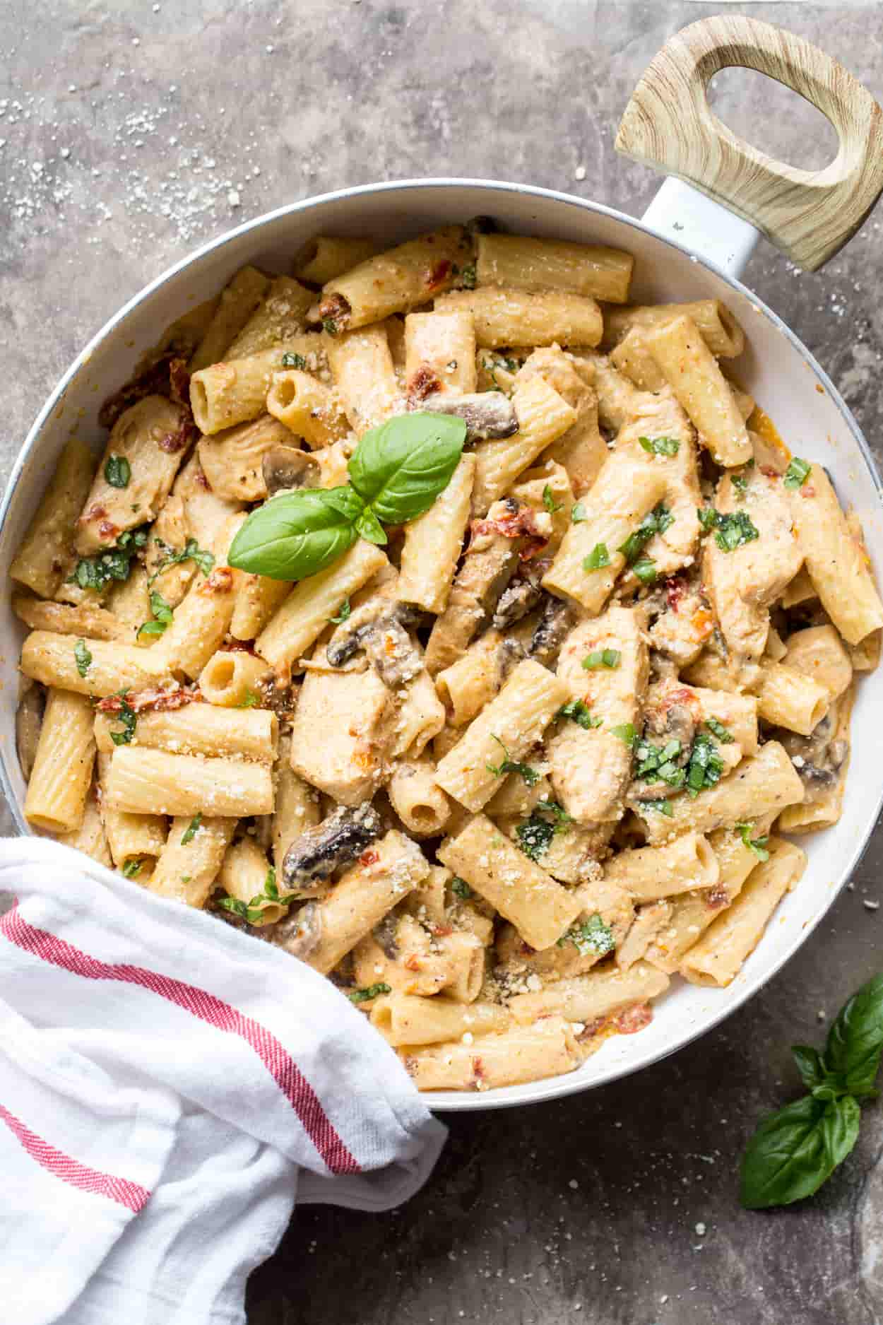 Each pot contains pasta with a creamy chicken and mushroom sauce for a comforting flavour.