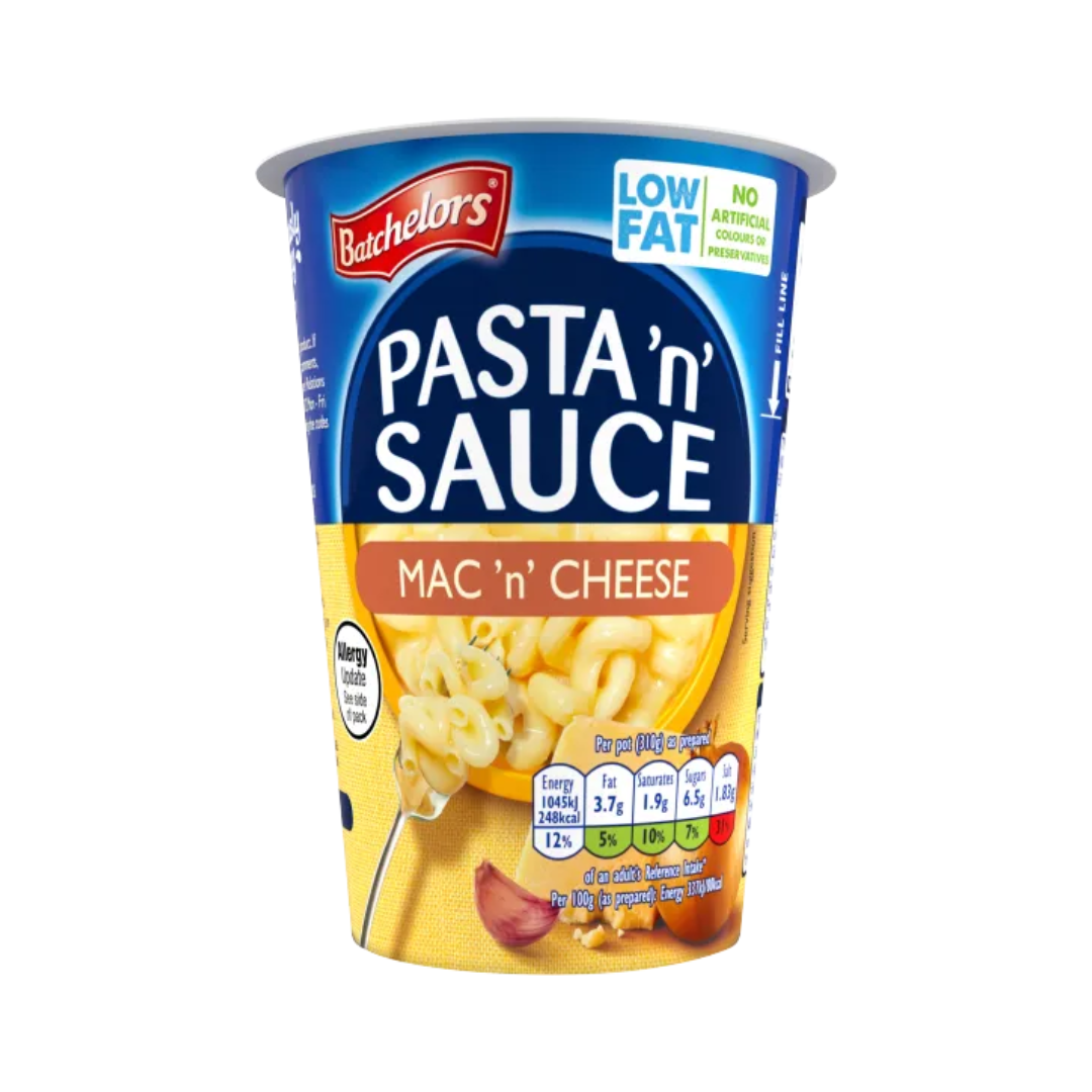 Batchelors Pasta 'n' Sauce Mac 'n' Cheese 65g is a quick and tasty meal option, perfect for busy days.