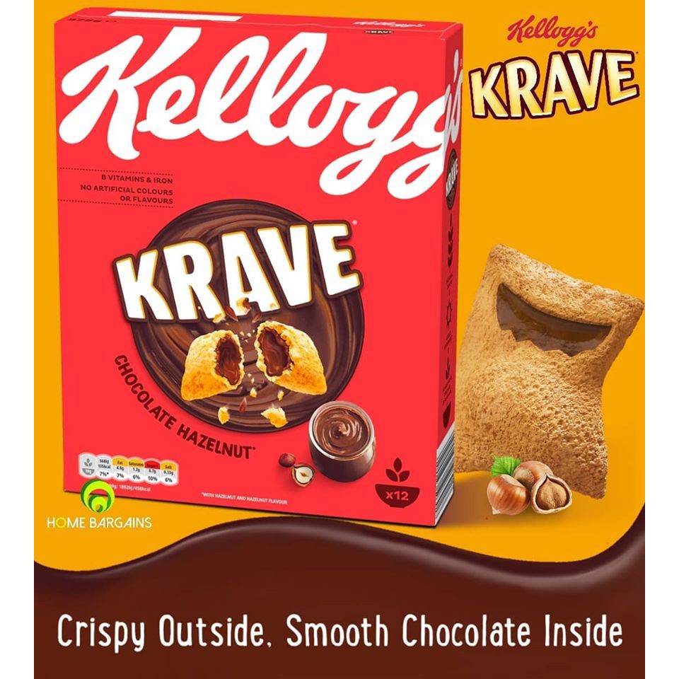 Kelloggs Krave is a delicious crunchy cereal made up of oat, rice and wheat pillows, all filled with scrumptious chocolate hazelnut.