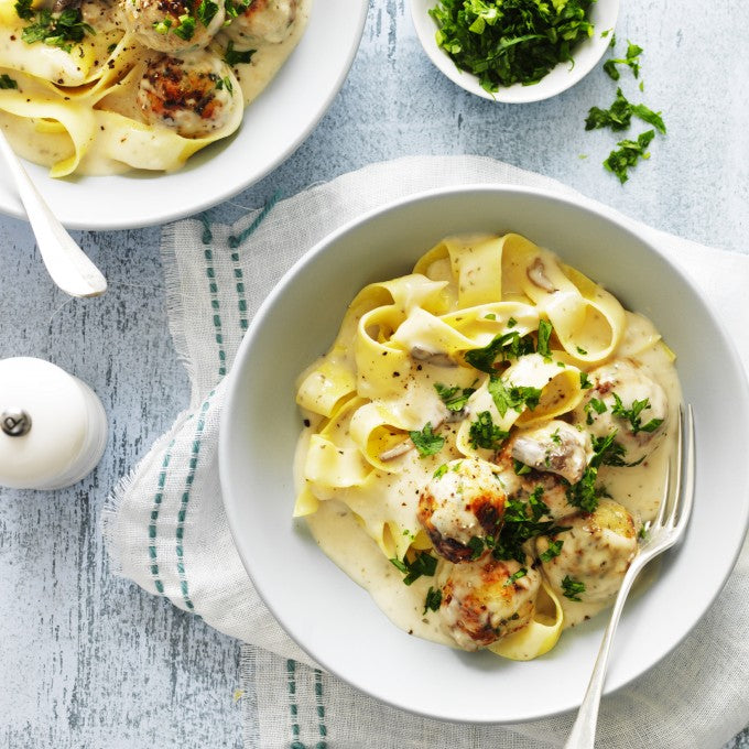 • Ingredients: Water, Mushrooms (12%), Cream (4.8%) (from Milk), Rapeseed Oil, Modified Maize Starch, Onions (3.2%), Acid (Lactic Acid), Madeira Wine, Sugar, Salt, Maltodextrin, Mushroom Extract, Pasteurised Egg Yolk, Stabiliser (Xanthan Gum), Thyme, Parsley.