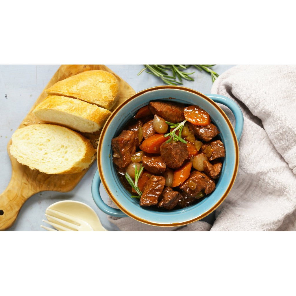 Simply mix the contents of the sachet with boiling water, add to a dish containing the basic ingredients of beef, onions and carrots, and place in the oven for 1 ¾ hours. It really is that easy.