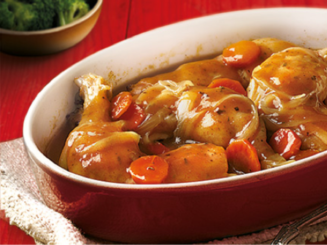 - - Recipe - Serves 4 Cooking time - 1 hour 1 sachet Colman's Chicken Casserole Seasoning Mix 1 tbsp vegetable oil 4 skinless chicken portions 2 medium onions, sliced 3 carrots, sliced 425ml cold water Preheat the oven to 180°C, 170°C fan assisted, Gas Mark 4. Heat the oil in a frying pan, and fry the chicken and onions for 3-4 minutes until browned. Place in an ovenproof casserole dish with the carrots. Blend the contents of the sachet with the water and add to the casserole. Cover and cook for 1 hour, ensure chicken is thoroughly cooked. Enjoy with baked potatoes and seasonal vegetables. For Slow Cookers: Place the chicken, onions and carrots in the slow cooker and add sachet contents. Mix well, then stir in 350ml boiling water. Cover and cook on 'low' setting for 8-10 hours or 'high' setting for 4-6 hours until chicken is tender. Slow cookers vary. Instructions are based on a 3 litre model.