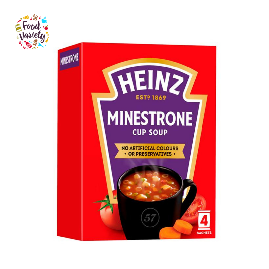 Dive into this glorious minestrone soup, topped off with croutons for a wonderful warming soup of tomatoes, vegetables and pasta. With absolutely no artificial preservatives or colours, our delicious Minestrone dry soup comes in a convenient sachet - perfect for when you want your favourite soup, in an instant. Love our Heinz Minestrone Cup Soup as much as we do? Try the rest of our Cup Soup range, including: Cream of Tomato, Cream of Chicken and Vegetable.