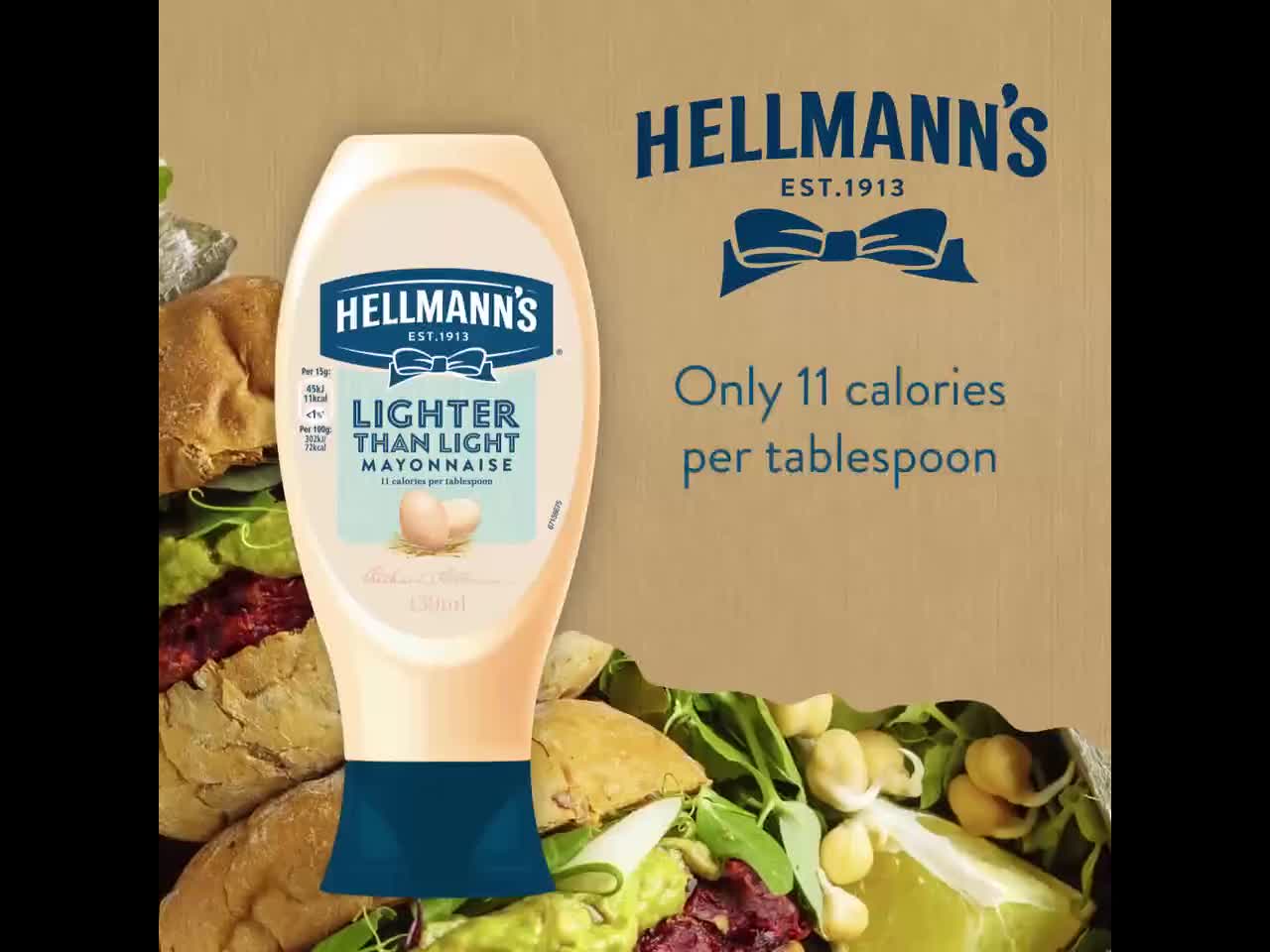 You can use Hellmann’s Lighter than Light Mayo for sandwiches, salads and burgers - enjoy the simple pleasure of good simple food