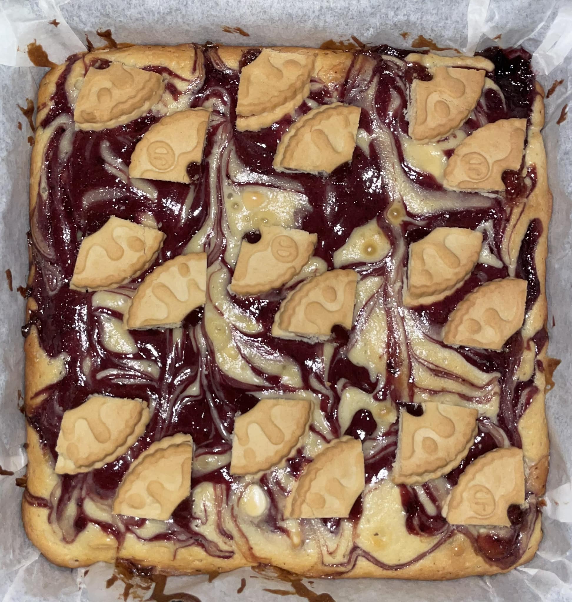 Ingredients Wheat Flour (Wheat Flour, Calcium Carbonate, Niacin, Iron and Thiamin), Apple and Blackcurrant Flavour Apple Jam (27%) (Glucose-Fructose Syrup, Apples (Sulphites), Sugar, Humectant (Glycerol), Flavourings, Colour (Anthocyanins (Sulphites)), Acid (Citric Acid), Acidity Regulator (Sodium Citrates), Gelling Agent (Pectin)), Vegetable Oils (Sustainable Palm, Rapeseed), Sugar, Partially Inverted Sugar Syrup, Raising Agents (Ammonium Bicarbonate, Sodium Bicarbonate), Salt, Flavourings