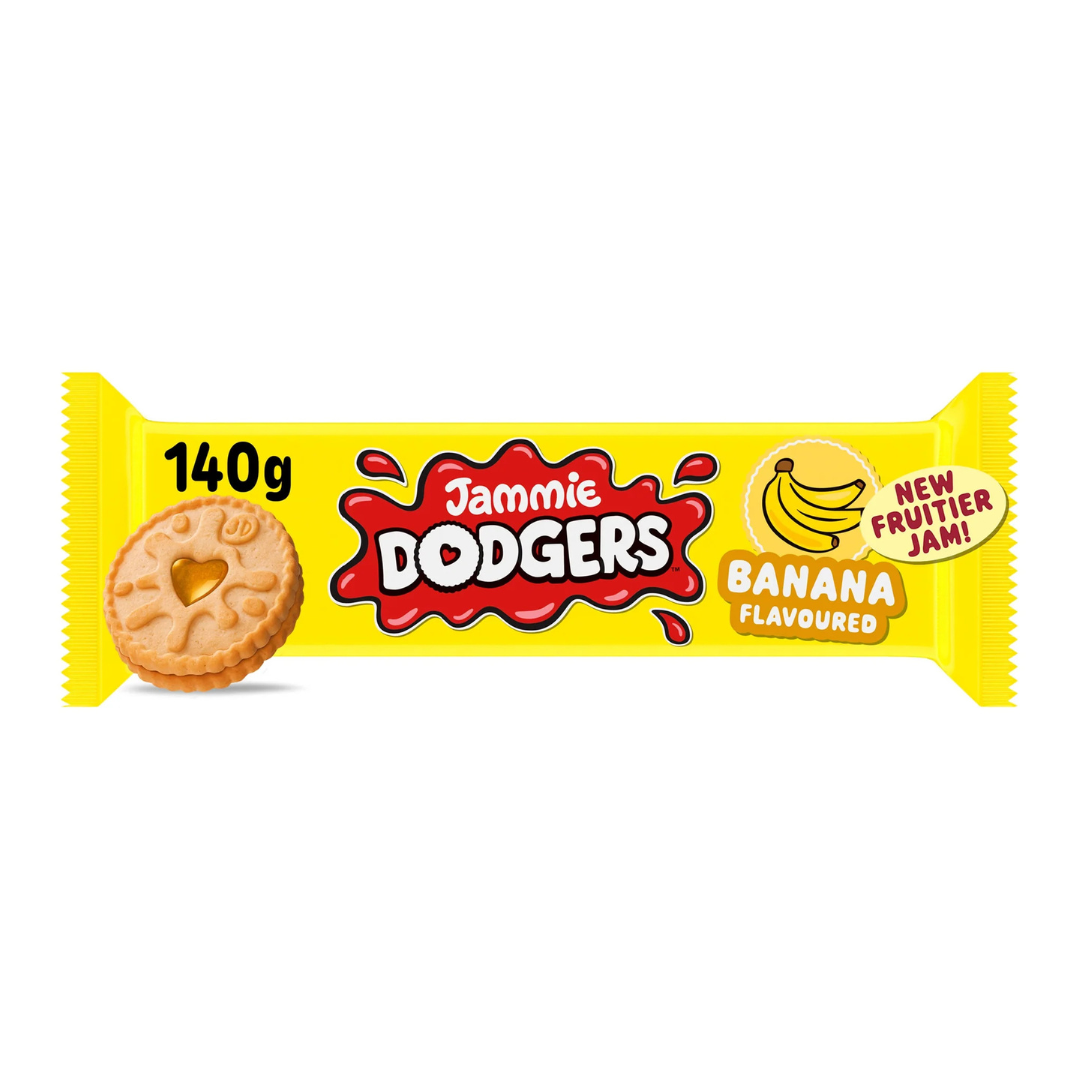 Jammie Dodgers Banana Biscuits bring a playful and fruity twist to your biscuit tin, making snack time more exciting.