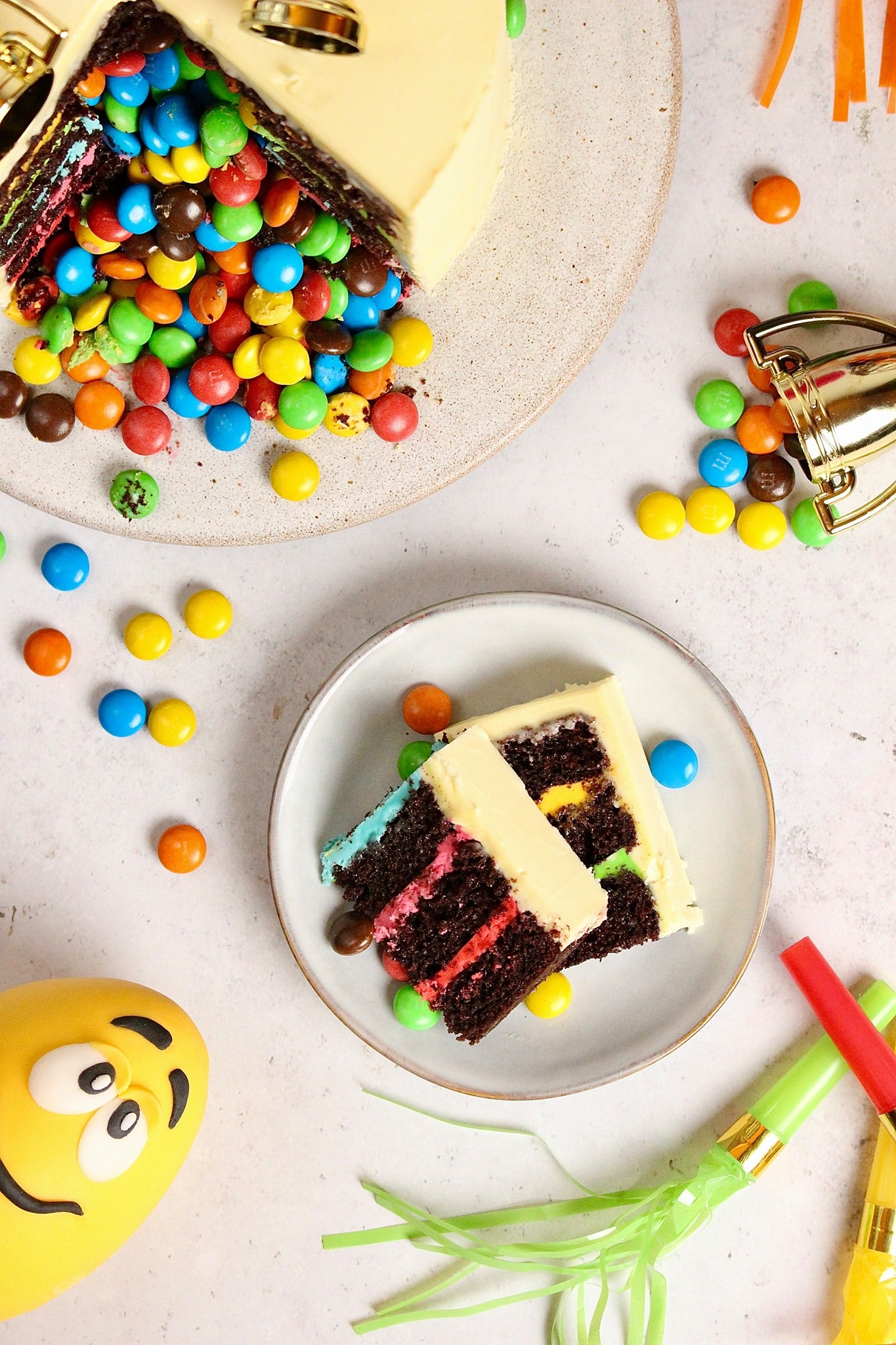 วัตถุดิบ : น้ำตาล, นมผงพร่องมันเนย, เนยโกโก้, มวลโกโก้, ไขมันปาล์ม, แลคโตส, นมไขมัน, เวย์เปอร์มีเอต (จากนม), นมผงฟูลครีม, อิมัลซิไฟเออร์ (เลซิตินจากถั่วเหลือง), แป้ง, เชียแฟต, น้ำเชื่อมกลูโคส, สารทำให้คงตัว (กัมอารบิก ), สี (E100, E133, E160a, E162, E170, E172), เกลือ, เดกซ์ทริน, สารเคลือบ (ขี้ผึ้งคาร์นอบา), น้ำมันเมล็ดในปาล์ม, สารสกัดวานิลลา, สารปรุงแต่งรส, ช็อกโกแลตนมมีของแข็งนมขั้นต่ำ 14% และของแข็งโกโก้ 25% ขั้นต่ำช็อกโกแลตนมมีไขมันพืชนอกเหนือจากเนยโกโก้