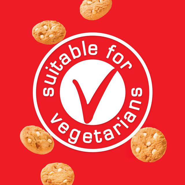 Ingredients Wheat Flour (Wheat Flour, Calcium Carbonate, Niacin, Iron, Thiamin),Sustainable Palm Oil,Sugar,White Chocolate Chips (14%) (Sugar, Dried Whole Milk, Cocoa Butter, Dried Skimmed Milk, Emulsifier (Soya Lecithin), Flavourings),Whey or Whey Derivatives (Milk),Partially Inverted Sugar Syrup,Raising Agents (Sodium Bicarbonate, Ammonium Bicarbonate),Flavourings,Salt