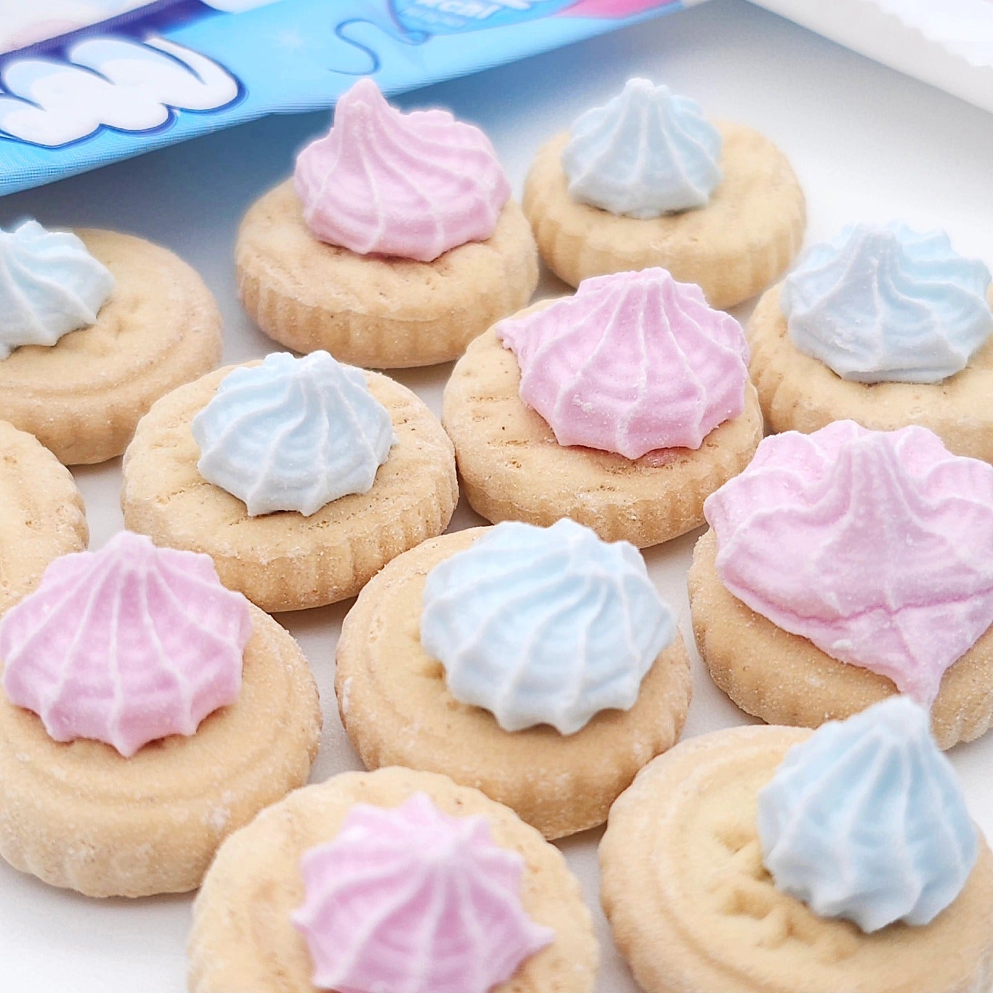 Each gem offers a delightful crunch from the biscuit and a burst of sugary, cotton candy-like flavor from the icing.