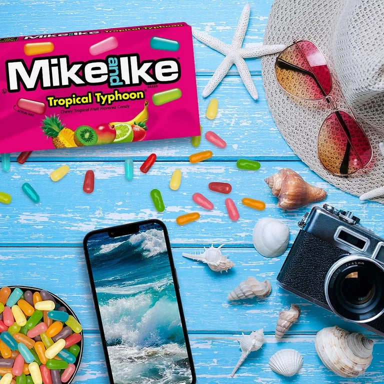 Fruity, Chewy Candy with a Tropical Twist: From the street to movie night, there's no better way to level up your day than with the assorted tropical flavors of Mike and Ike Tropical Typhoon