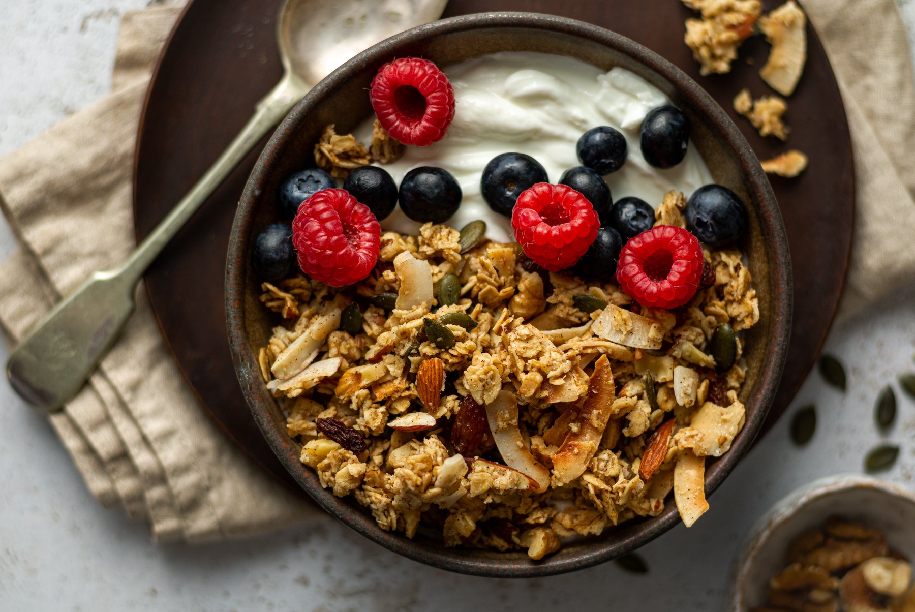 Our granola contains the perfect blend of oats, nuts, seeds and fruit. To start your day in the most delicious way.