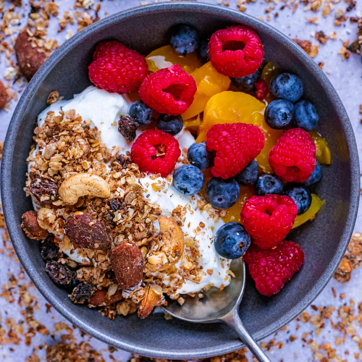 กราโนล่าของเราประกอบด้วยข้าวโอ๊ต ถั่ว เมล็ดพืช และผลไม้ที่ผสมผสานกันอย่างลงตัว เพื่อเริ่มต้นวันใหม่ของคุณด้วยวิธีที่อร่อยที่สุด