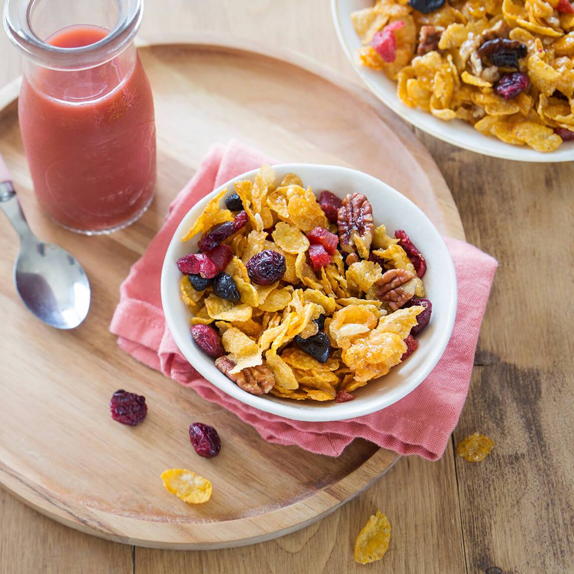 Each bite delivers a light, crunchy texture perfect for pairing with milk or yogurt.