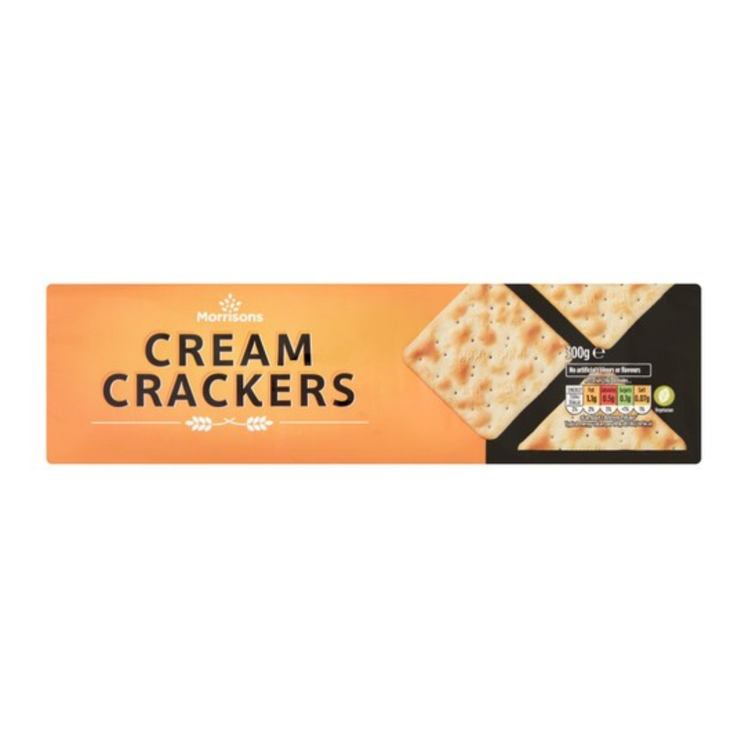 Morrisons Cream Crackers 300g offer a classic, crisp texture perfect for snacking or pairing with toppings.
