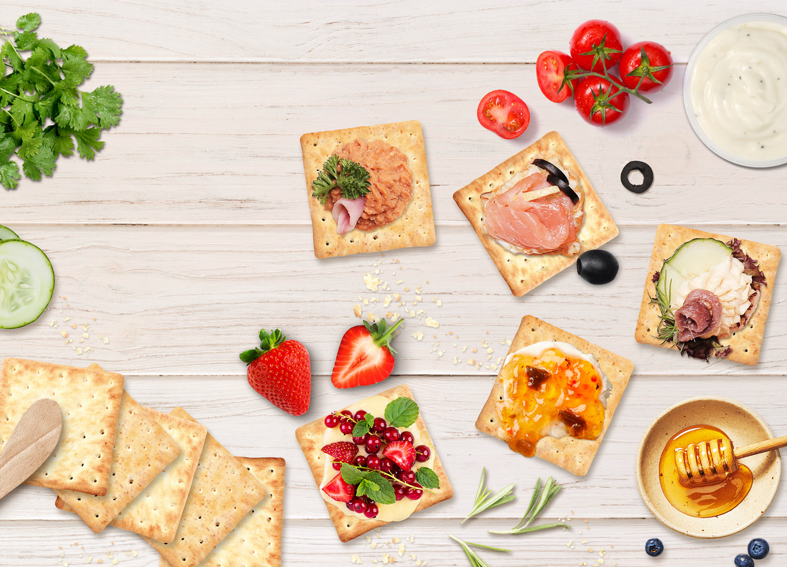 These crackers have a light, buttery flavor that complements cheeses, spreads, and dips.