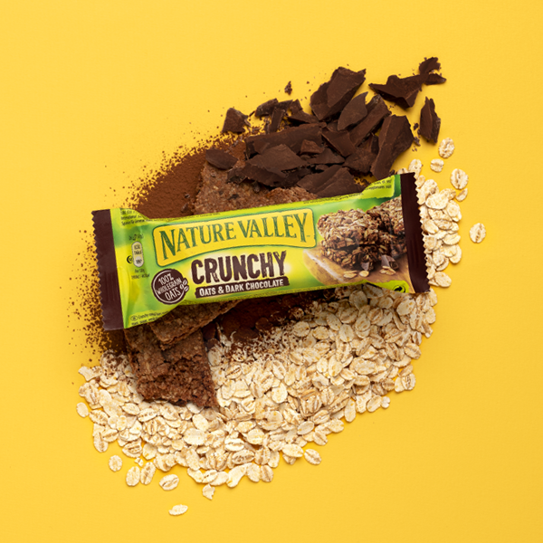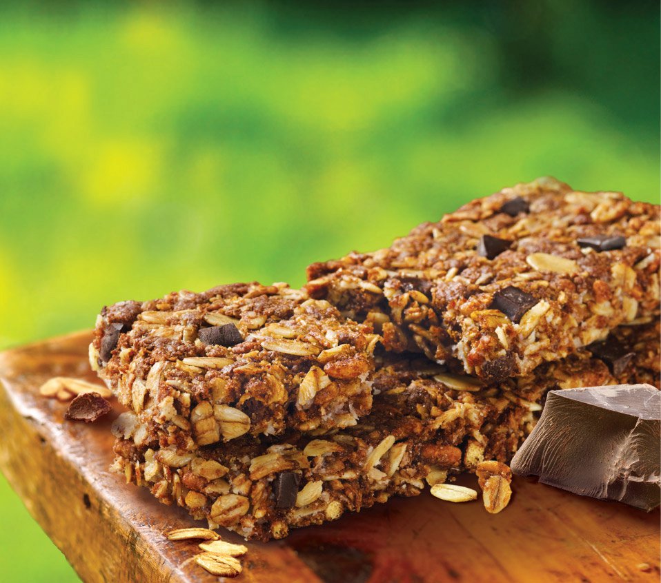 ข้าวโอ๊ตและดาร์กช็อกโกแลต - ซีเรียลบาร์กรุบกรอบที่ทำจากข้าวโอ๊ตรีดทั้งเมล็ดและดาร์กช็อกโกแลตชิ้น