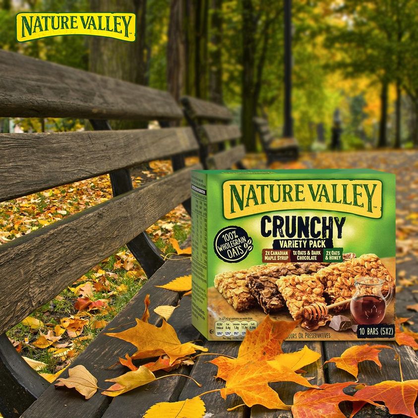 Packed with whole grain oats and other ingredients. Carefully selected such as honey and chocolate as you like. or Canadian maple syrup, Nature Valley™ Crunchy Variety Pack Bars are the perfect on-the-go snack that's ready for you whenever you need it most. Abundant nature That's why each of our packs includes two delicious bars.