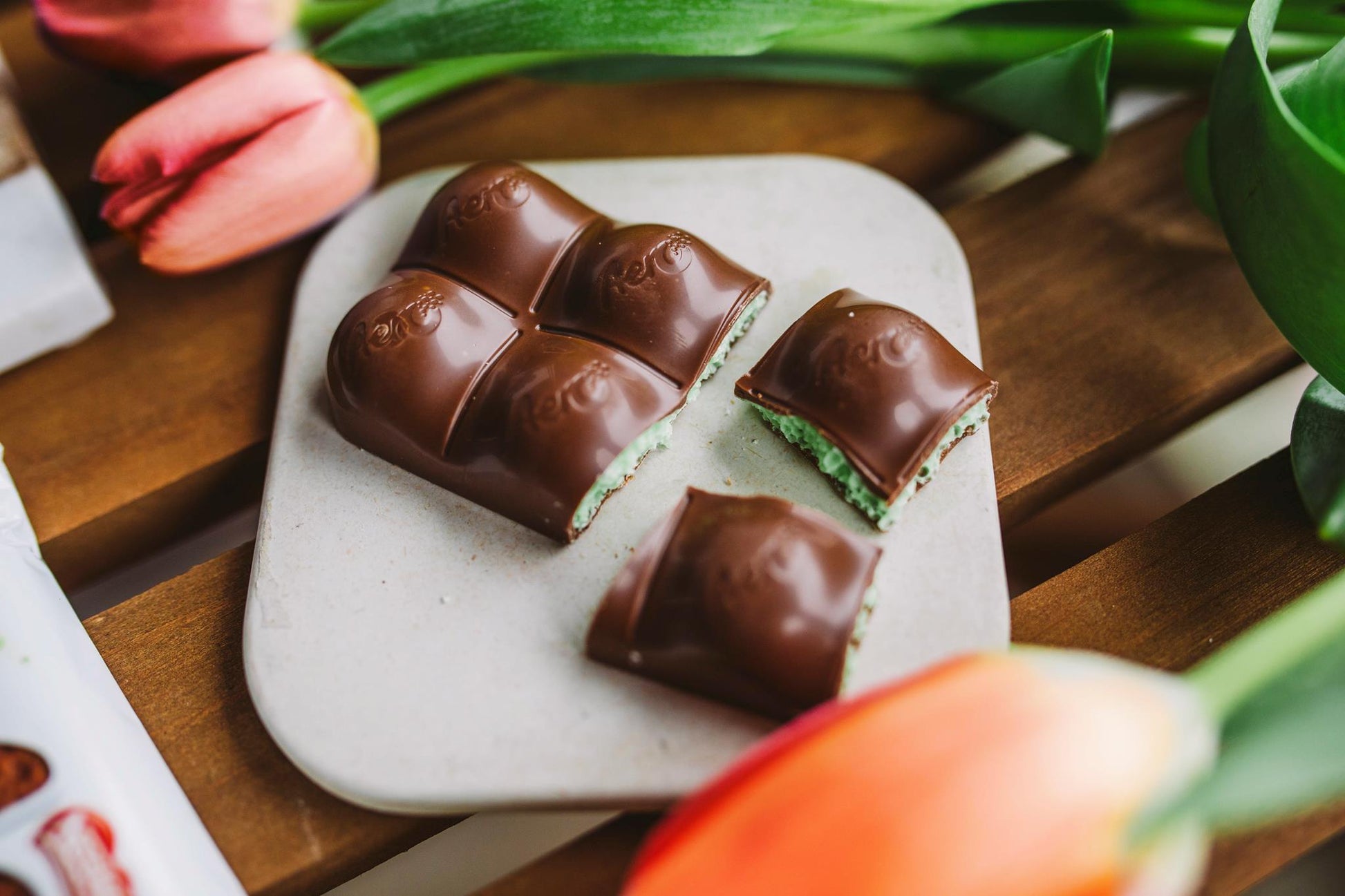 ช็อกโกแลตนมรสมิ้นต์ รสกลมกล่อม ตรงกลางมีฟองรสเปปเปอร์มินต์ ความสุขเล็กๆ น้อยๆ เหล่านี้เหมาะสำหรับการแบ่งปันกับเพื่อนและครอบครัว