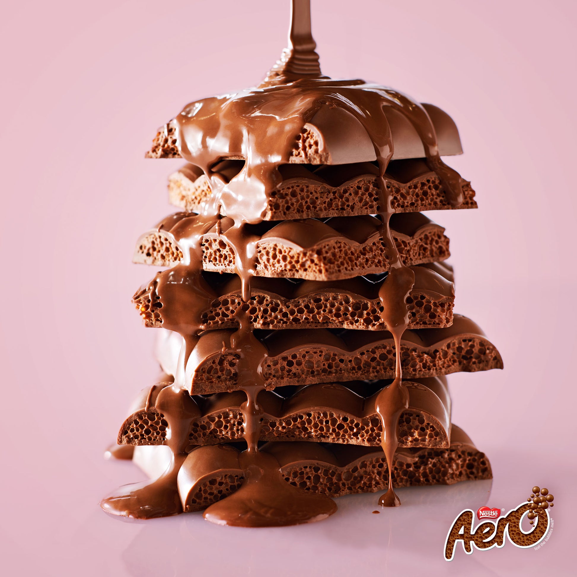 - Break a piece off, feel it melt on your tongue as every single bubble is released, and revel in the bubbly pleasure of Aero® chocolate.
