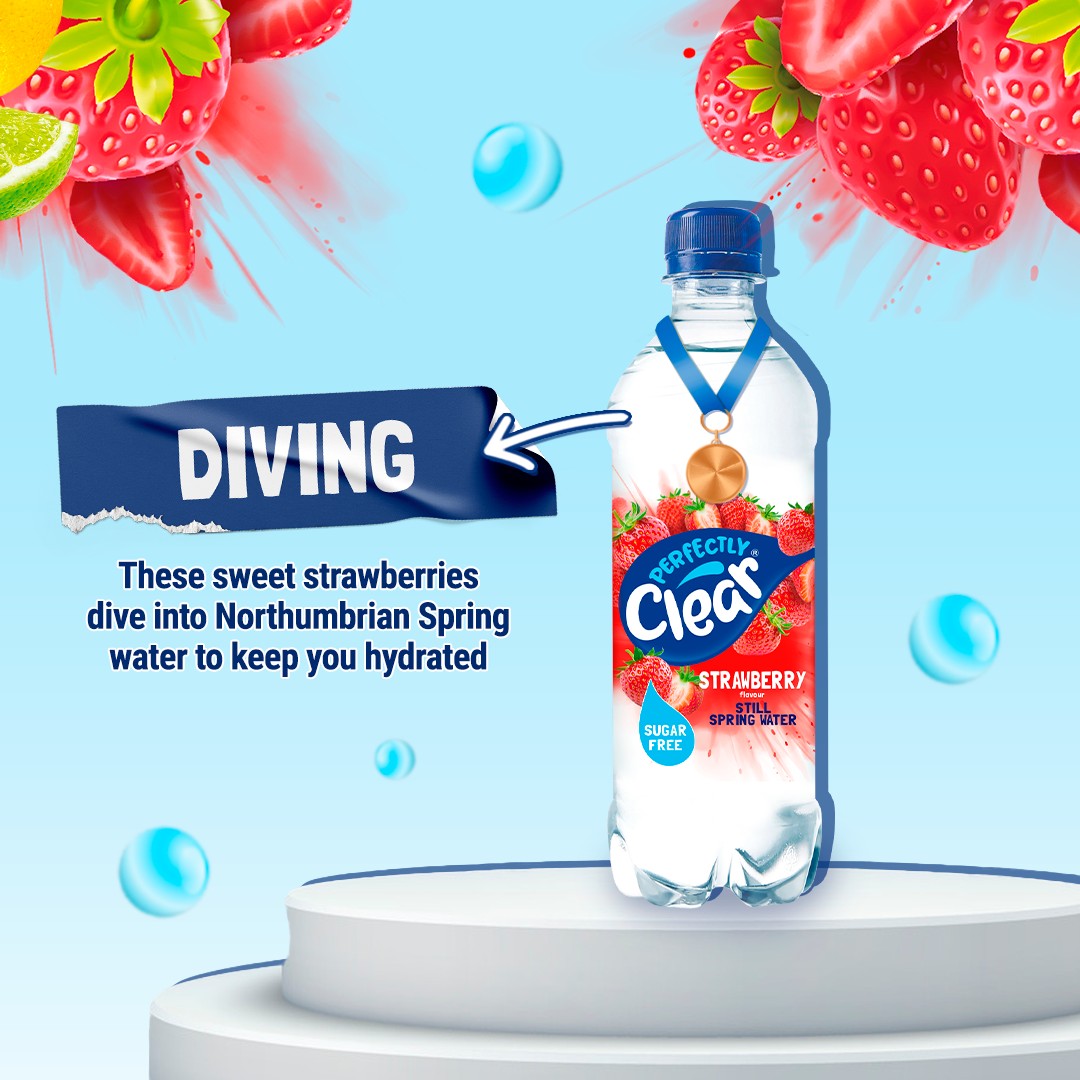 Perfectly Clear Strawberry Still Spring Water blends pure still spring water with the sweet, fruity flavour of ripe strawberries for a refreshing, sugar-free drink.