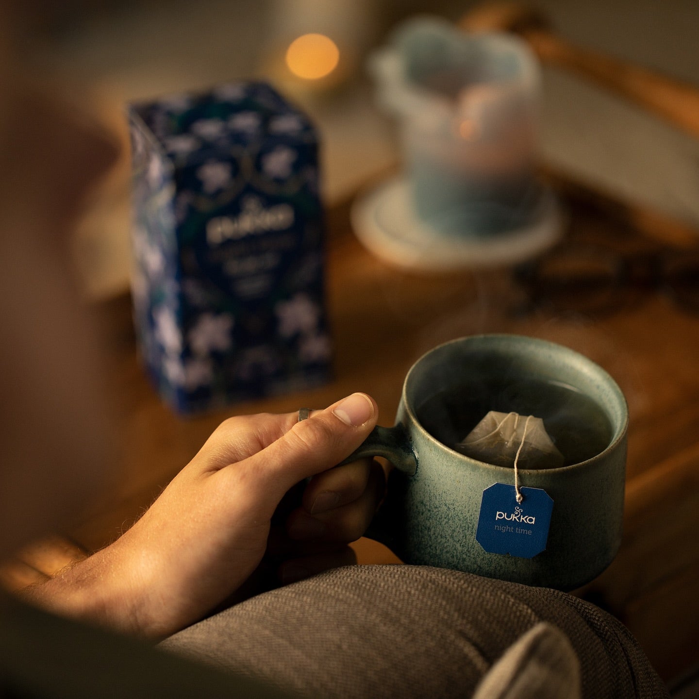 Drift into a peaceful night with Pukka Night Time Herbal Tea 20s 20g, a calming blend crafted to help you relax and unwind before bed.