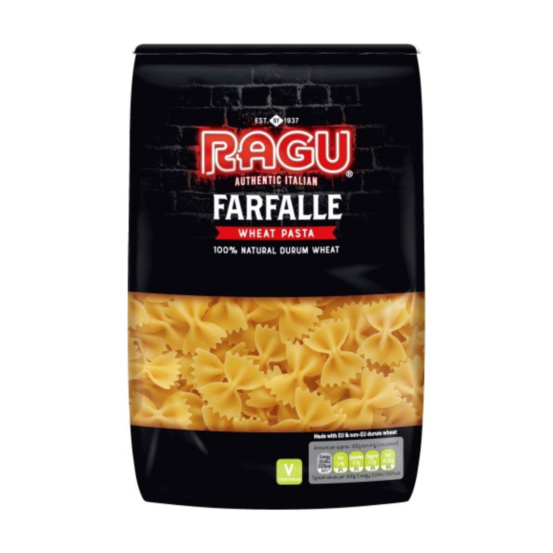 Ragu Farfalle Wheat Pasta (750g) is made from 100% durum wheat semolina. It may contain mustard and soya.