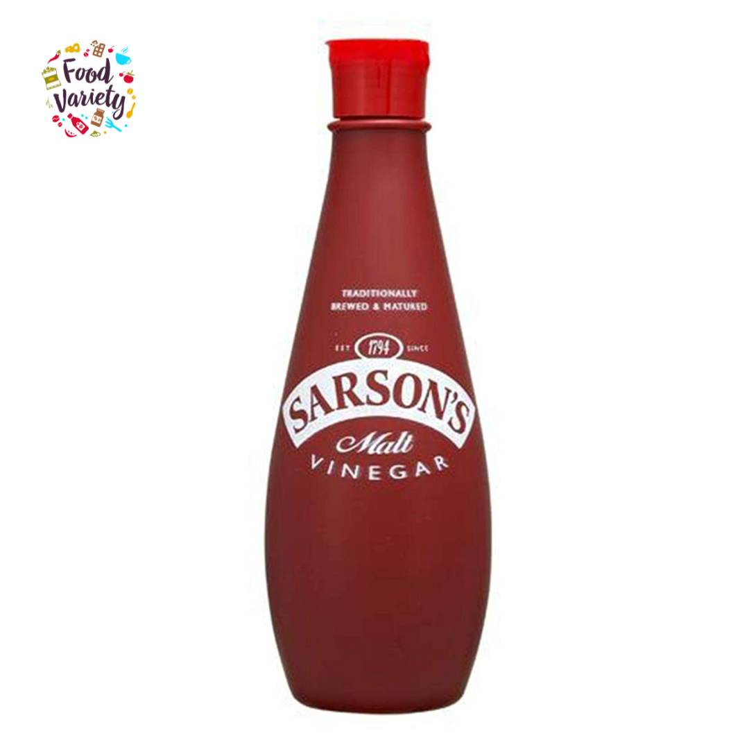 - Malt Vinegar -Splash it over your fish and chips or any of your other favourite foods, Sarson's vinegar has a wonderful taste and is so versatile it can be used to bring out the flavour in a whole host of traditional dishes!