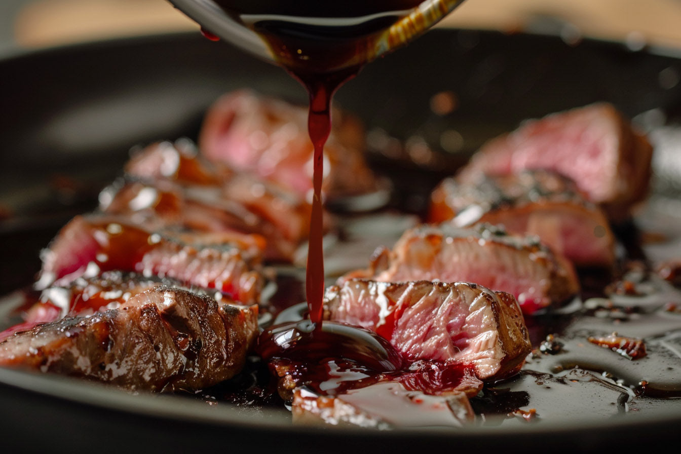 ซอสวูสเตอร์ ที่เข้มข้นและเผ็ดปรุงแบบดั้งเดิมและสุก โรยชีสลงบนขนมปังในเครื่องดื่มค็อกเทล Bloody Mary และสปาเก็ตตี้โบโลเนส