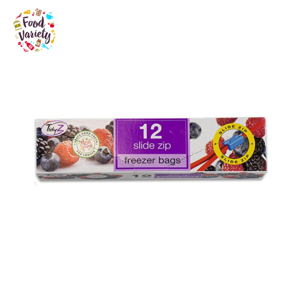 TidyZ Slide Zip Freezer Bags 12s are durable, resealable storage bags designed to keep your food fresh and organized.